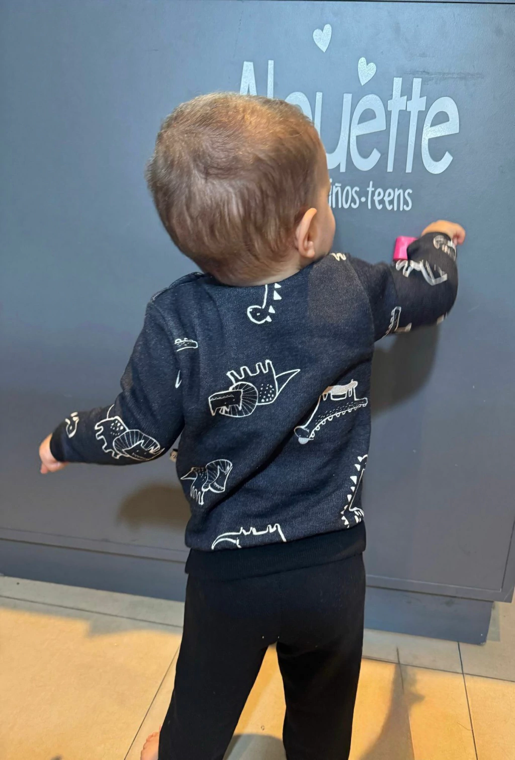 Conjunto FRISADO DINOS. Ambas prendas vienen frisadas, buzo estampado y pantalón liso. Un conjunto para salir a jugar y divertirse comodos y cancheros. TABLA DE TALLES 4ta foto