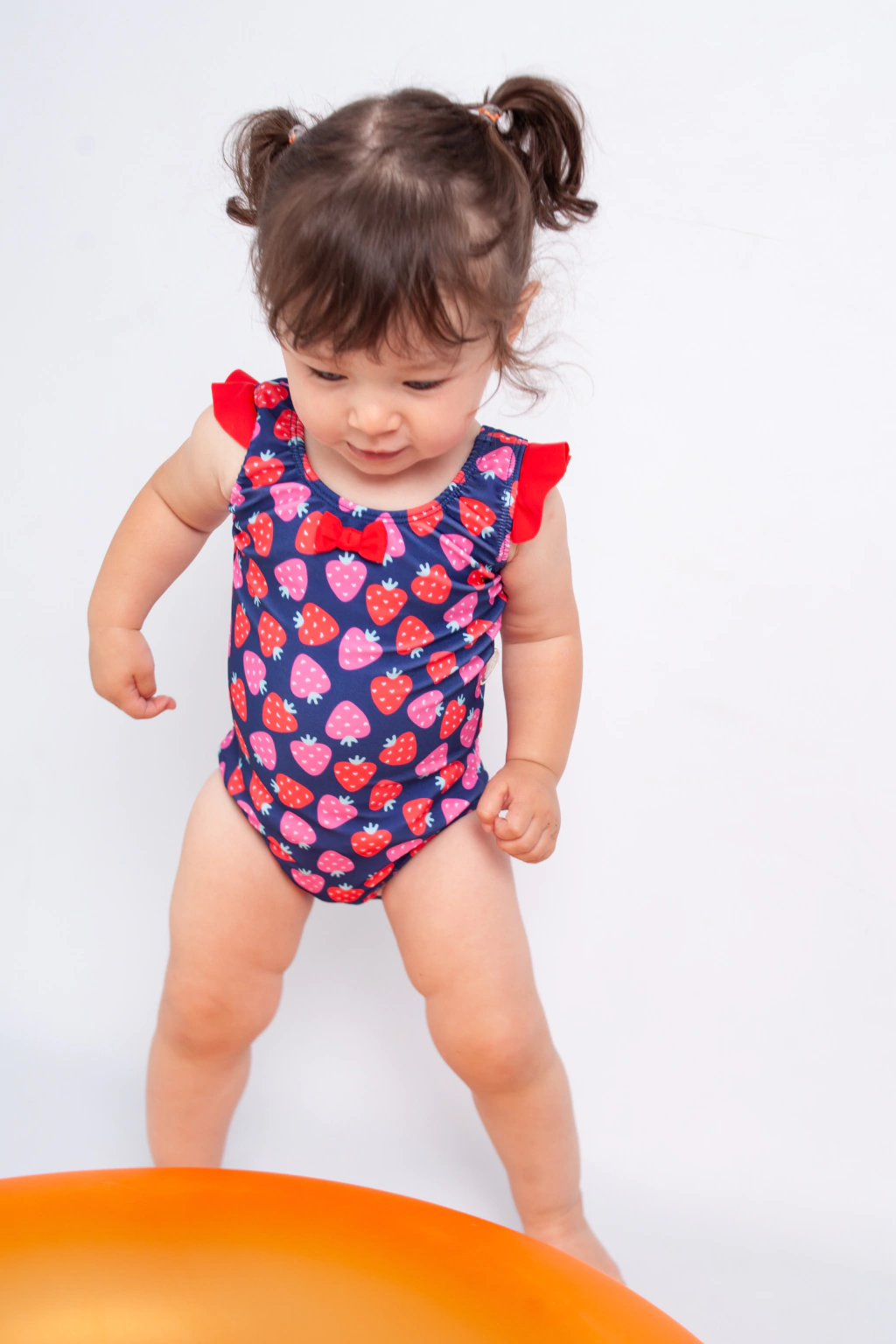 Malla con filtro UV CERTIFICADO FRUTILLITAS! Malla estampada con espalda cruzadita manguitas y moño. Cuenta con BROCHES en la entre pierna para un fácil cambiado de pañal.